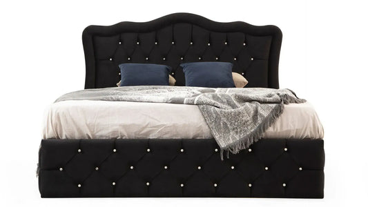 Cadre De Lit VENISE NOIR - Velours capitonné strass