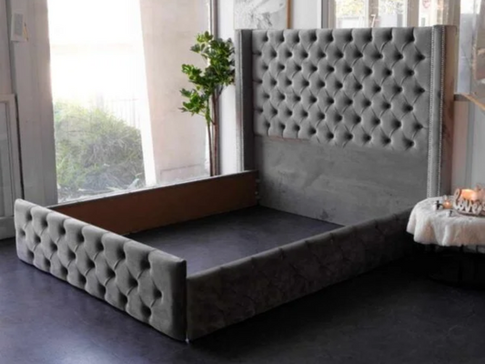 Cadre De Lit ROYAL GRIS - Velours capitonné