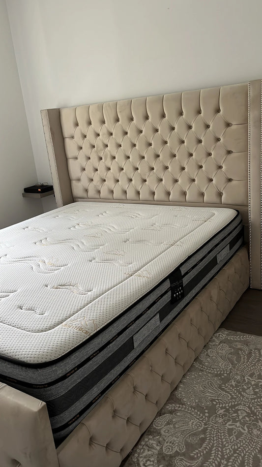 Cadre De Lit ROYAL BEIGE - Velours capitonné