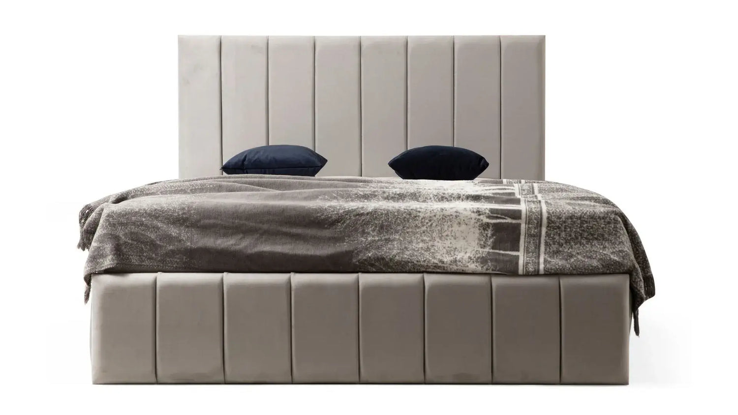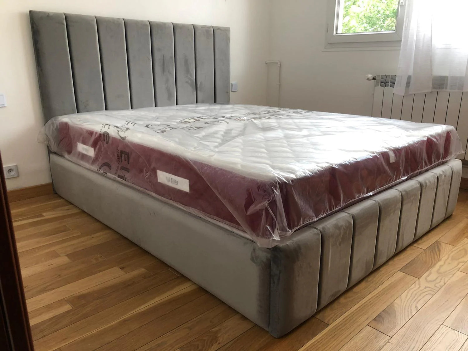 Structure & Matière : Cadre et Tête de lit en panneau agglomérer, capitonnage Mousse HR, Tissu Velours.