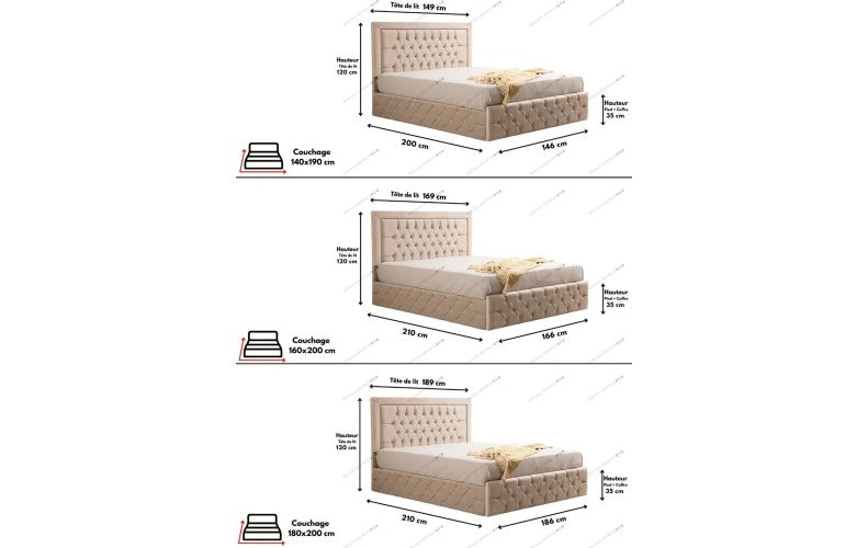 - 3 dimensions : 140x190 – 160x200 – 180x200