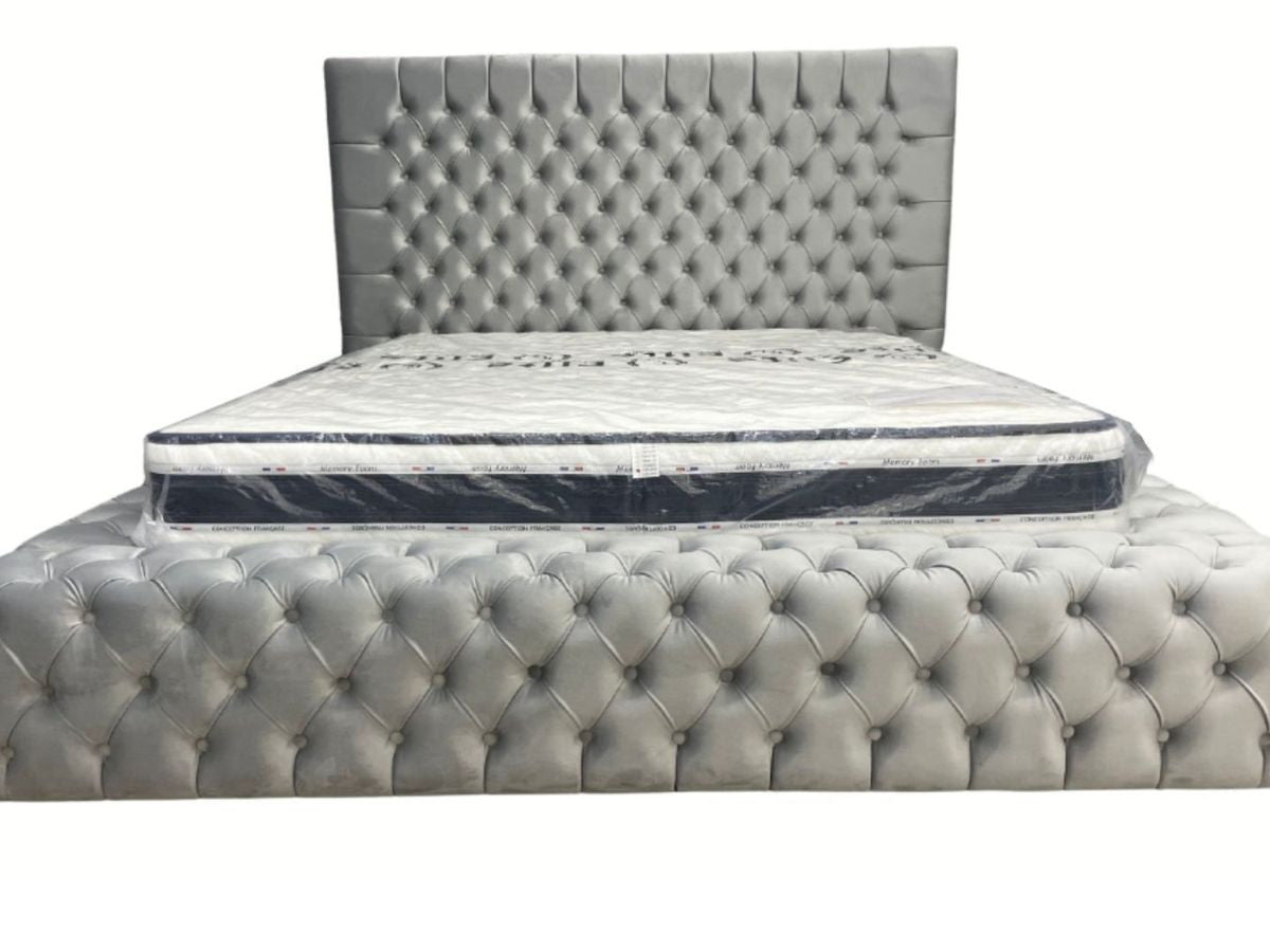 Cadre De Lit ROYAL GRIS - Velours capitonné