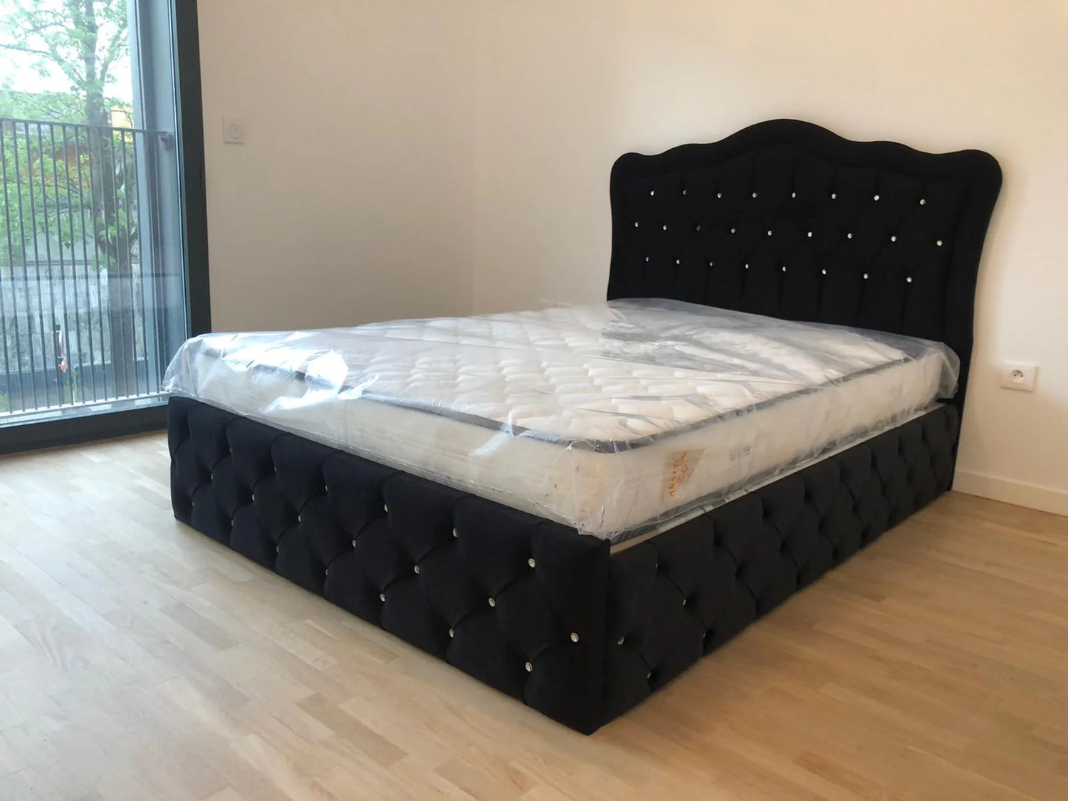 Cadre De Lit VENISE NOIR - Velours capitonné strass