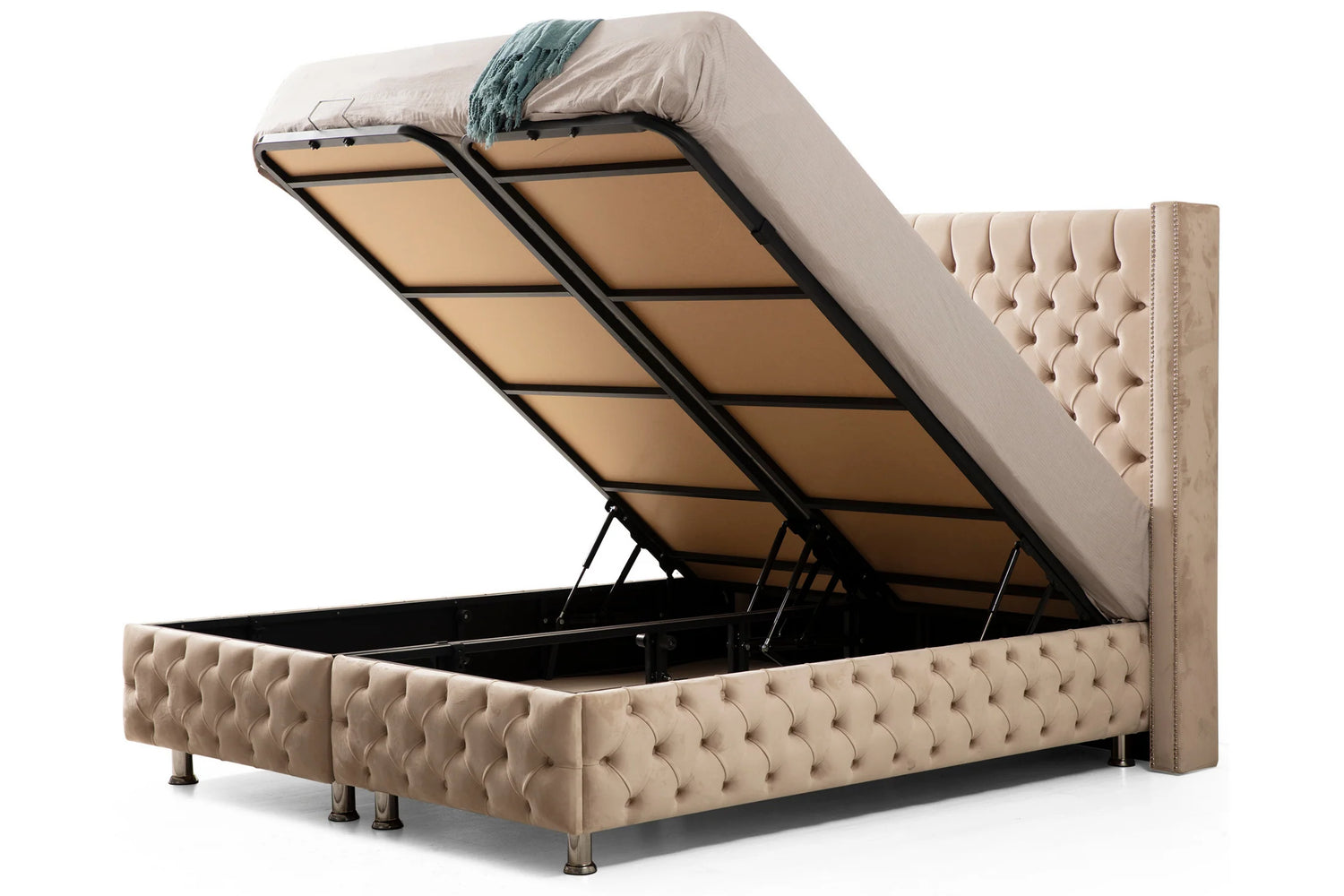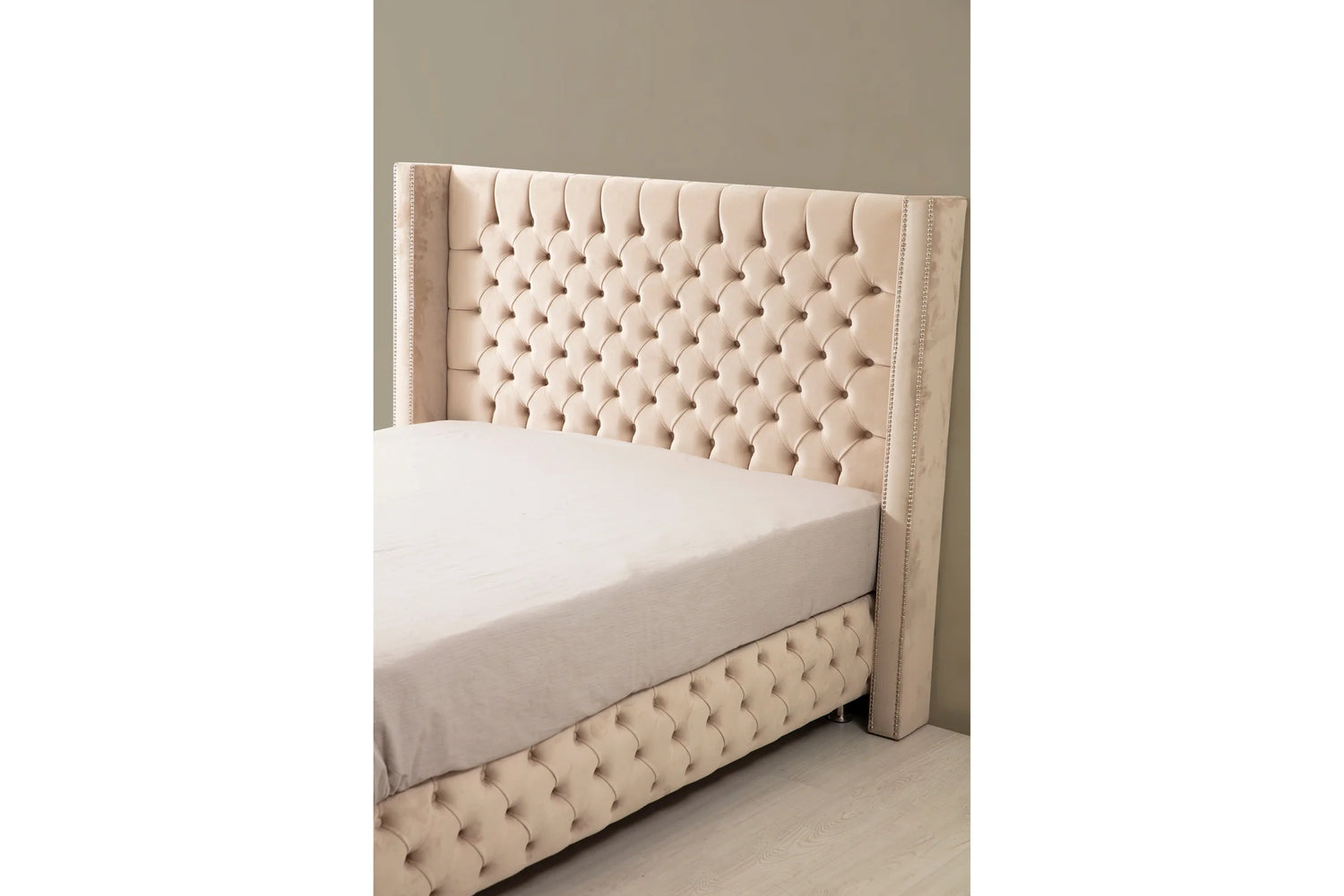 Lit Coffre CLOUTE BEIGE - Velours capitonné