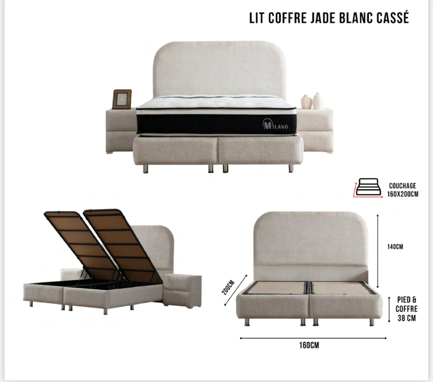 Dimension Couchage Du Lit : 140x190 , 160x200 ou 180x200.