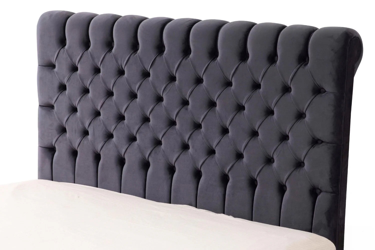 Lit Coffre LUNA GRIS ANTHRACITE - Velours capitonné
